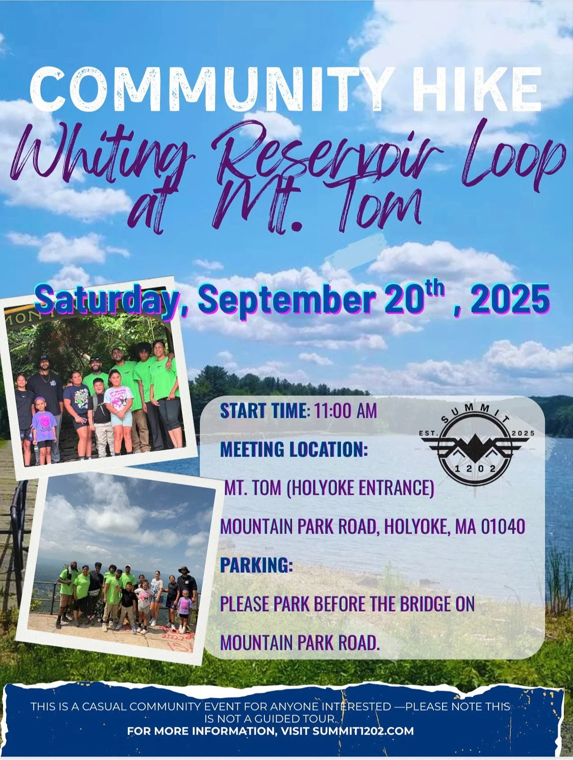 We organize community hikes in Western Massachusetts for individuals interested in discovering the outdoors. We do not at the moment do tour guided hikes.